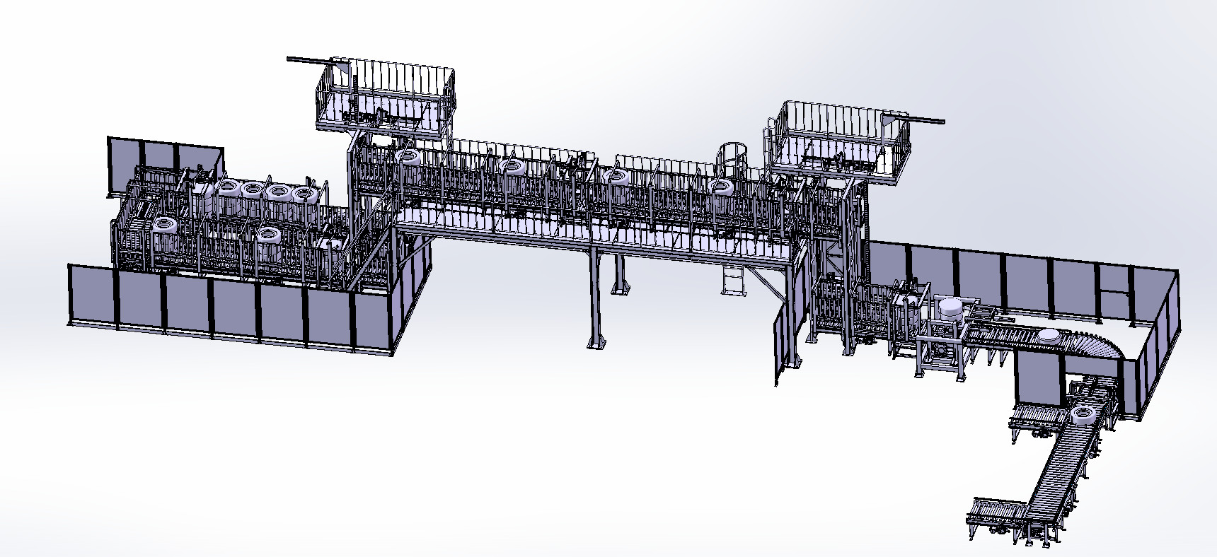 该轮胎线由多条滚筒线及其它输送设备组成的输送系统,完成多方面的工艺需要。结构简单,平稳可靠,可通过停止器实现积放功能。