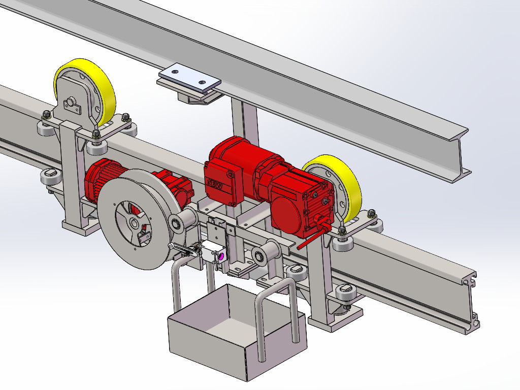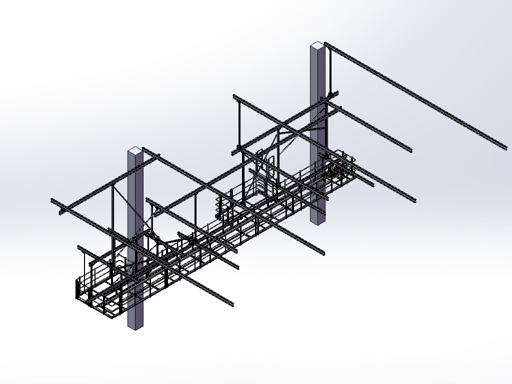 用于空中搬送LET设备,返回线采用侧移装置完成空中线搬送,在装载位与拾取位垂直升降。装载位放入LET,升起后设备自动完成空中搬送并降至拾取位,作业员取出LET后设备空返回装载位。