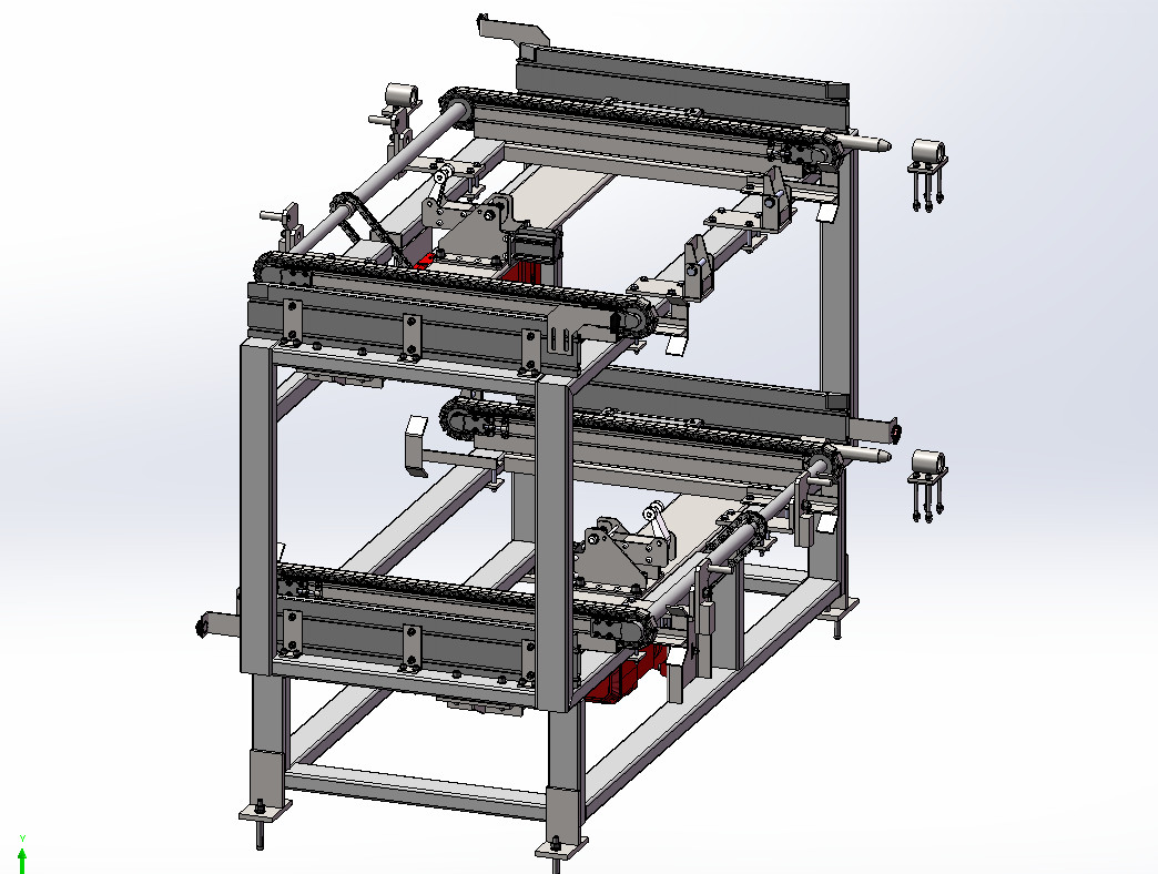 本设备为倍速链输送线与升降机、90°转台、托盘等设备组合使用的输送线,主要以链条作为牵引和承载体输送产品,托盘在两条上下平行的输送线上循环输送,产品在上层线的尾部上线并在其头部下线,下层线仅用于空托盘的返回。倍速线采用特制铝型材制作,方便安装,外形结构美观,功能多样,自动化程度高。