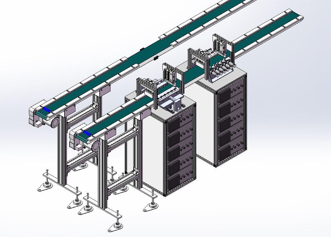 该倍速链滚轮与被输送产品之间为滚动摩擦,倍速链可以以恒定速度连续运行被输送产品可以在任意位置停止而不损坏链条。采用三相异步交流电机驱动,控制简单、成本低廉,滚轮由塑料制作,运行平稳、噪音低、耐磨损。