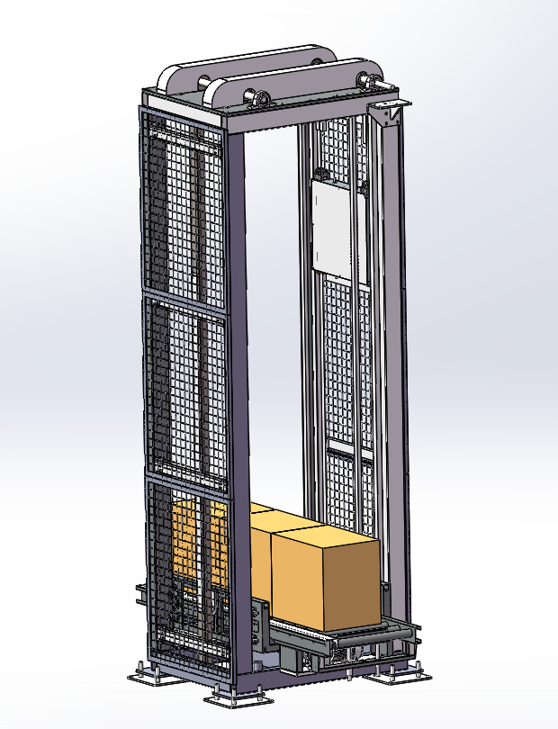 重载升降机,采用电机带动的重载链条提升,提升高度可以达到3米,适用于自动化工厂的物料提升工序,提升机占地面积小,满足智能化工厂物料生产线的输送需求。
